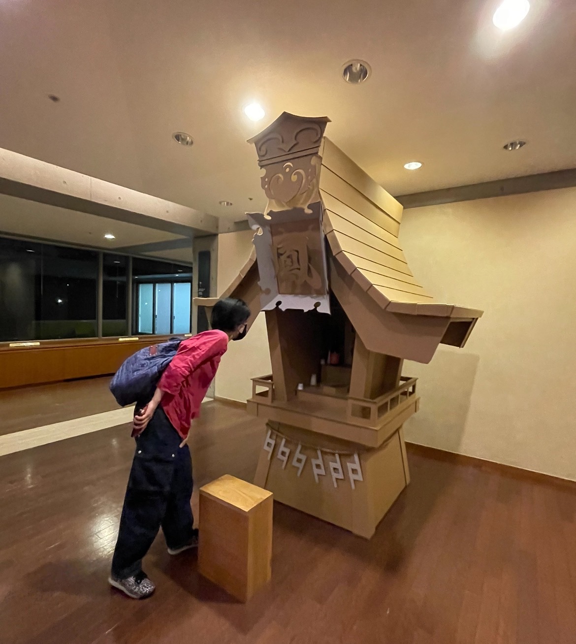 のために造られたお社(made by 段ボール)でした‼…クオリティすごい✨